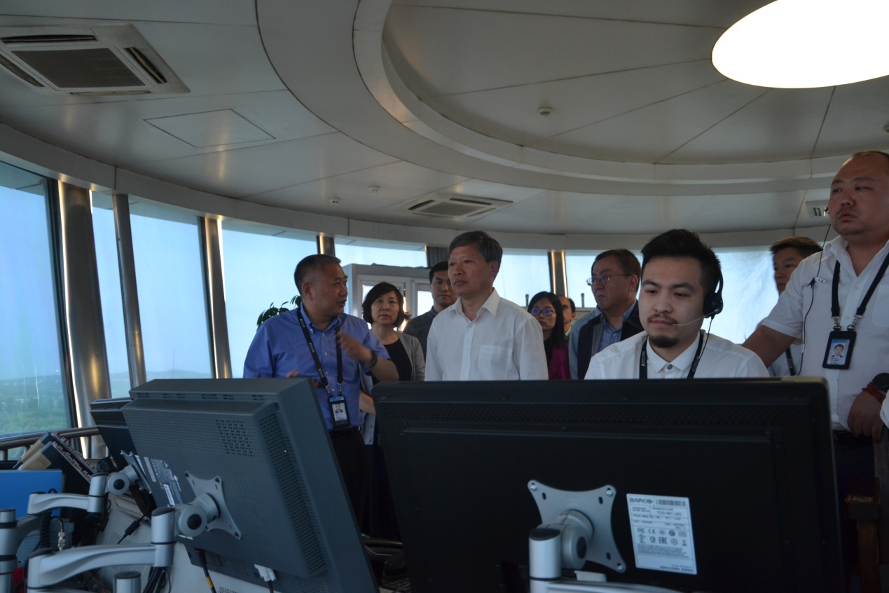 孙小平董事长、刘岩松经理一行参观了机场塔台、区管中心和发射台后勤基地。